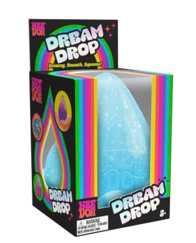 Dream Drop Nee Doh is a soft, droplet-shaped squishy toy designed for calming sensory play and stress relief.